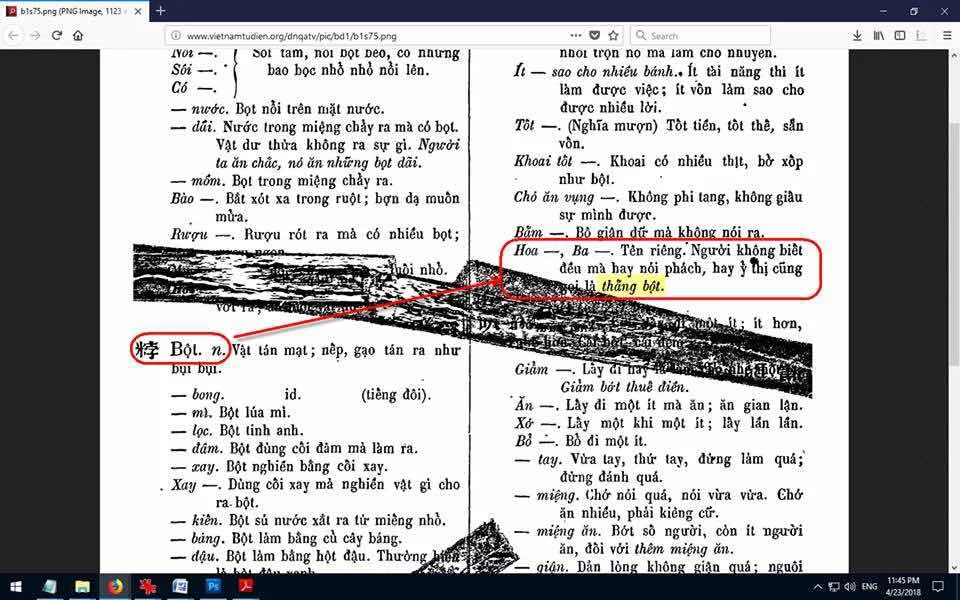 6. Còn mình dò lại bộ Đại Nam Quốc Âm Tự Vị, thì ở từ Bột, mình thấy rõ ràng cụ Huỳnh Tịnh Của còn viết là "𥹸 Bột - Người không biết đều mà hay nói phách, hay ỷ thị cũng gọi là thằng bột.".
