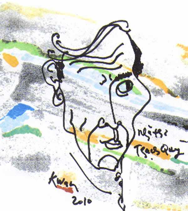 Có lần tôi với hắn đi nghe một tay giáo sư người Mỹ nói chuyện văn chương, trong giờ giải lao, hắn bước đến nói chuyện với tay giáo sư đó. Chẳng biết nó nói những gì mà khi trở lại sân khấu để tiếp tục câu chuyện, tay giáo sư người Mỹ mời hắn lên ngồi chung và giới thiệu hắn với cử tọa bằng những lời rất trân trọng. Lần đó hắn bị công an văn hóa mời lên mấy lần để nói rõ mối quan hệ giữa hắn và tay người Mỹ. Hắn chỉ bảo là hắn không đồng tình một số ý của diển giả và người giáo sư nể hắn. Thế thôi. Bắt nó làm tường trình, nó bảo chẳng có đéo gì mà phải tường với trình, không tin thì cứ đi hỏi tay giáo sư người Mỹ chứ tại sao lại hỏi hắn. Cuối cùng huề, chẳng có chuyện gì mà ầm ĩ.