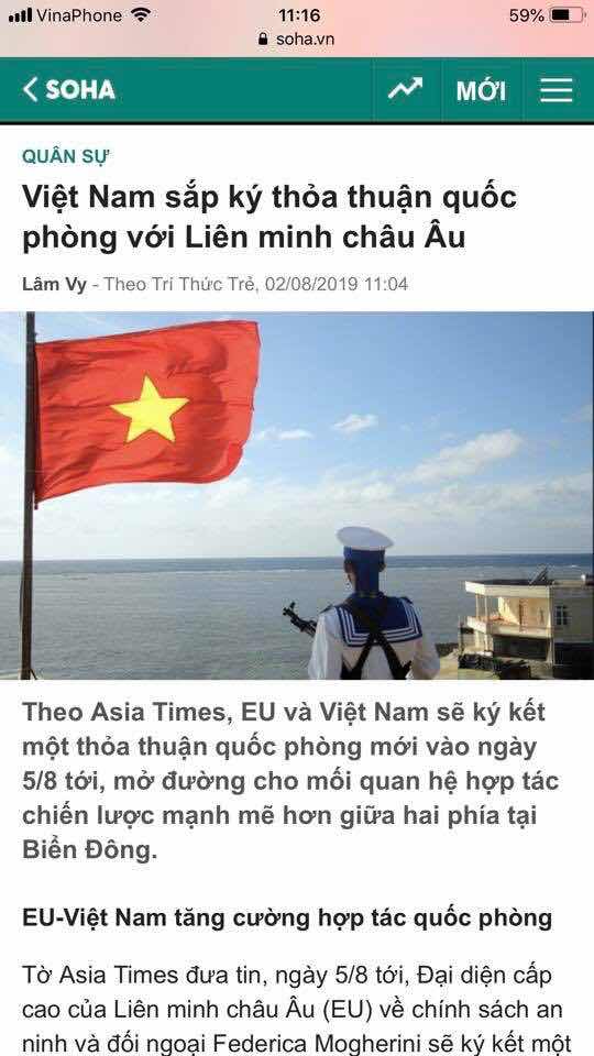 Thoả thuận quốc phòng Việt Nam-EU và những bài đánh võ mồm của đảng trên báo đảng với phía Trung Quốc cũng như phát biểu cứng rắn của Ủy viên Bộ Chính Trị Phạm Bình Minh tại Asean vừa qua cho thấy cuộc tình hai đảng anh em Việt-Trung phải tan vỡ là điều tất yếu. Về mặt quốc tế thì Việt Nam đến nay tạm ổn, vấn đề còn lại là niềm tin của nhân dân với đảng trong đối nội mà thôi.