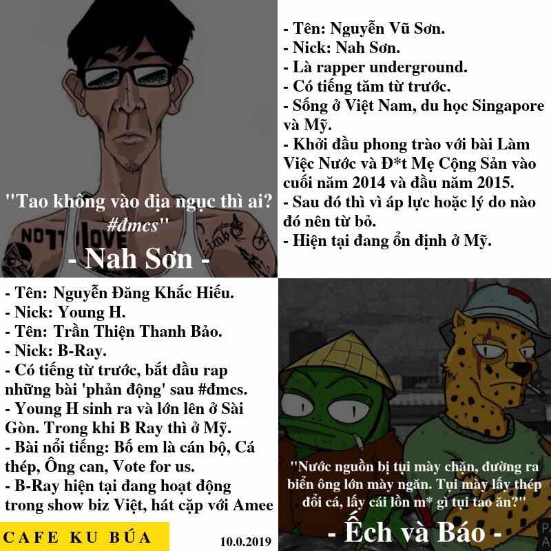 [NAH SƠN VÀ ẾCH VÀ BÁO - CHÍNH TRỊ TRONG LỜI NHẠC] Nếu là một người trẻ quan tâm đến đất nước thì ít nhiều bạn sẽ biết đến Nah Sơn và Ếch & Báo. Cả hai đều đã có góp sức quan trọng cho âm nhạc và quá trình đánh thức tỉnh giới trẻ. Nhưng lại có hai kết quả khác nhau. Ở đây không soi mói vào đời tư của họ mà chỉ nhìn vào chuyên môn và tác động.