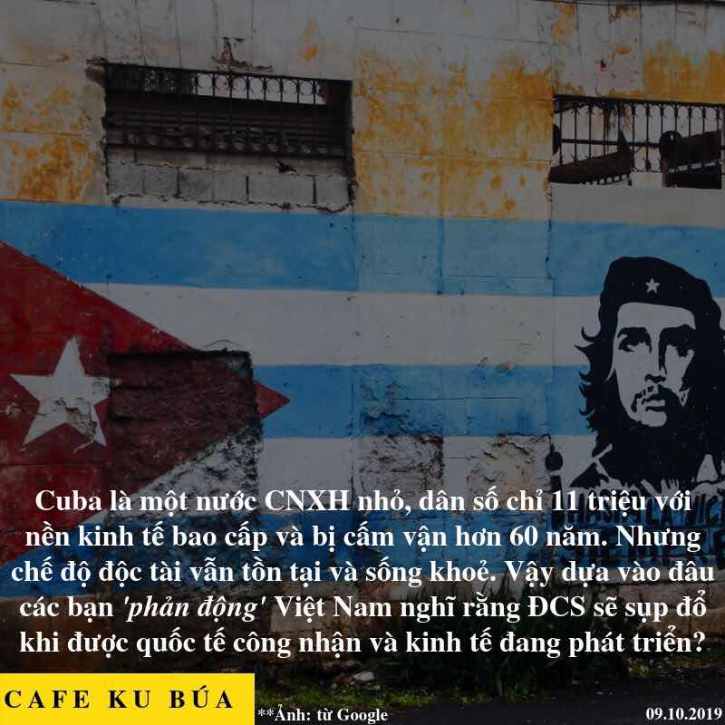 Cuba là một nước CNXH nhỏ với nền kinh tế bao cấp, dân số chỉ 11 triệu và họ đã bị Mỹ cấm vận hơn 60 năm. Nhưng ĐCS Cuba vẫn tồn tại và chẳng hề có dấu hiệu nào cho thấy nó sẽ biến đổi. Nếu có thì chỉ là sự cải tiến để thúc đẩy phát triển.