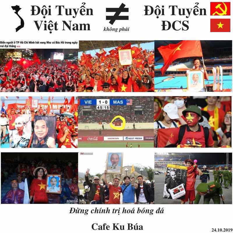 Đừng chính trị hoá môn thể thao này nữa. Hãy để bóng đá là bóng đá. Đây là Đội Tuyển Việt Nam chứ không phải Đội Tuyển ĐCS. Đừng lợi dụng. [24.10.2019]