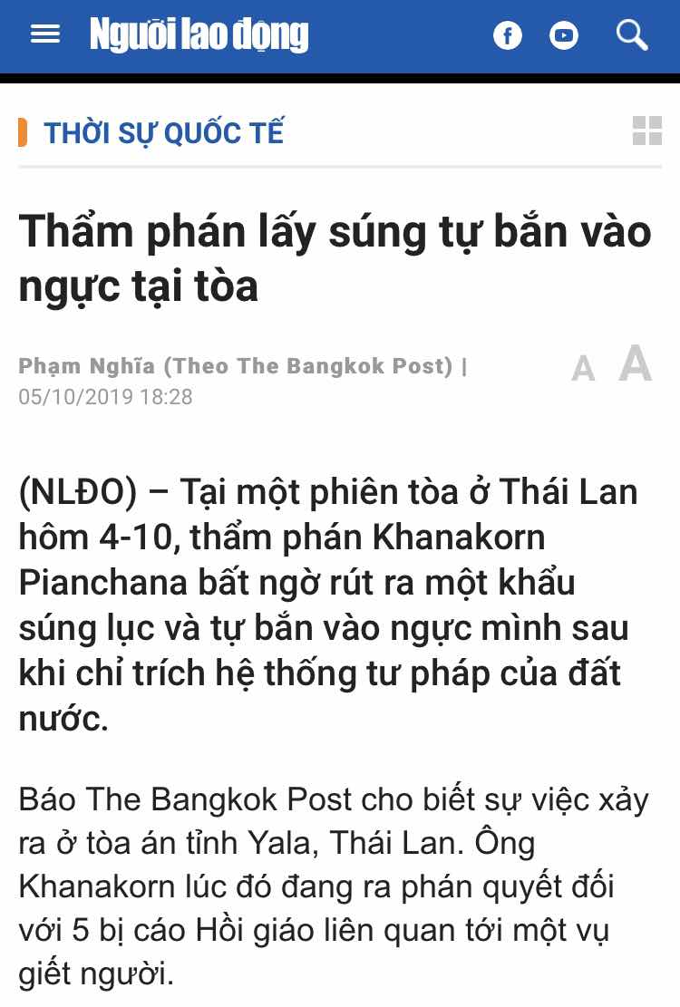 Chỉ vì nhiều thẩm phán cấp cao đã gây tác động buộc vị thẩm phán sơ thẩm này phải tuyên xử 03 bị cáo tử hình và 02 bị cáo phải chịu án tù trong vụ án với cáo buộc giết người, nhưng vì không đủ bằng chứng, vị thẩm phán sơ thẩm (một tỉnh của Thái Lan) đã theo nguyên tắc suy đoán vô tội - khi không đủ bằng chứng kết tội thì phải tuyên vô tội - và ông đã làm như vậy đối với cả 05 bị cáo.