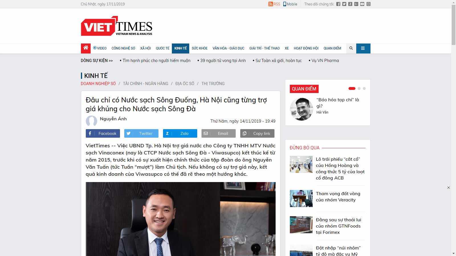 Về vấn đề này, mời đọc bài viết: "Đâu chỉ có Nước sạch Sông Đuống, Hà Nội cũng từng trợ giá khủng cho Nước sạch Sông Đà". Bài viết này đăng trên VietTimes ngày 14/11/2019.