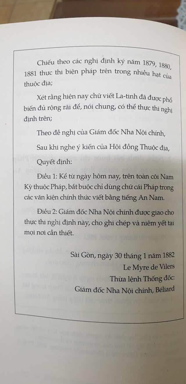 Thực dân Pháp thực ra còn là mẹ của phong kiến! Khi chiếm được Nam Kỳ, họ coi đây là vùng đất mới cần "xóa cờ đánh lại" mà không có thế lực chính trị nào dám bất tuân. Vào thời điểm mới xâm lược, đã có 2 luồng quan điểm của người Pháp, 1 là ép dân Nam Kỳ dùng chữ Pháp, đồng hóa tuyệt đối, biến Nam Kỳ thành 1 tỉnh Đông Pháp.