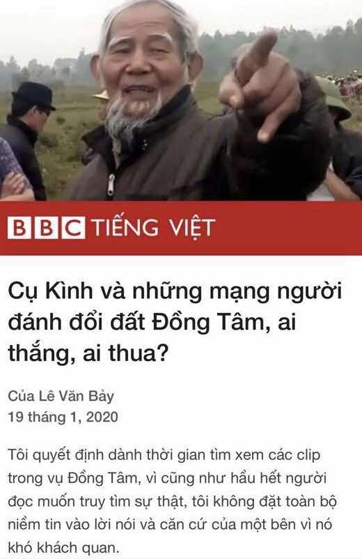 Hôm nay BBC Việt Ngữ đăng một bài viết về vụ Đồng Tâm làm tôi chú ý và có nhiều suy nghĩ tương đồng nên đọc kỹ và muốn nói ra vài điều.