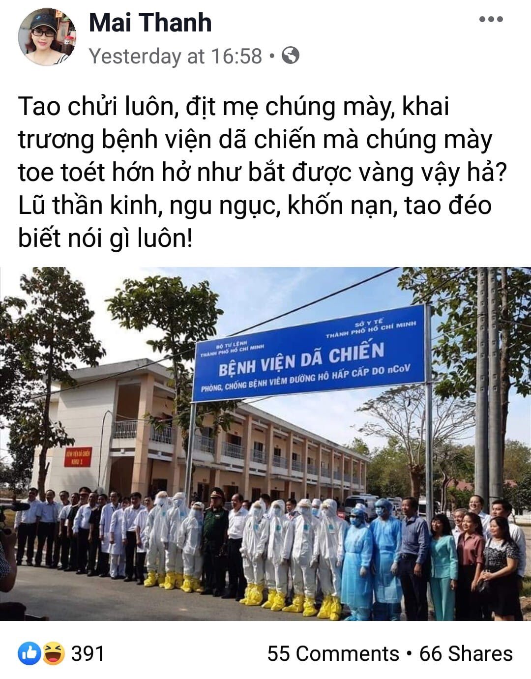 Hình ảnh: viện dã chiến ở HCM được khai trương trong niềm vui phấn khởi của cán bộ đảng ta ngày hôm qua. Vũ Hán nào ở đâu xa, hồ chí minh ta đó có sợ gì Corona?
