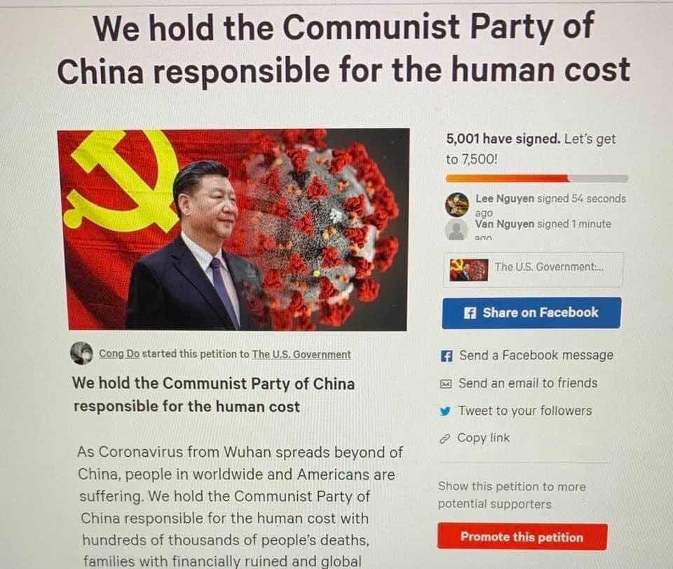 (Hình bản Thỉnh Nguyện Thư tố cáo csTQ đạt hơn 5,000 chử ký trong vòng 48hrs. Sau đó đã bị csTQ cho áp lực lấy xuống)
