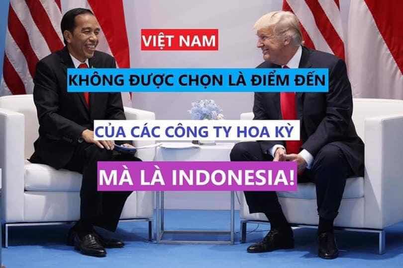 Vì vậy không có gì ngạc nhiên khi vào ngày 16/5/2020 vừa qua, trang Policy Times của Ấn Độ khẳng định trong một cuộc điện thoại gần đây với Tổng thống Indonesia Joko Widodo, Tổng thống Mỹ Donald Trump đã quyết định dời 27 nhà máy Mỹ từ Tàu cộng sang Indonesia đặt ở khu vực rộng 4.000 ha ở Công viên công nghiệp Brebes tại tỉnh Trung Java.