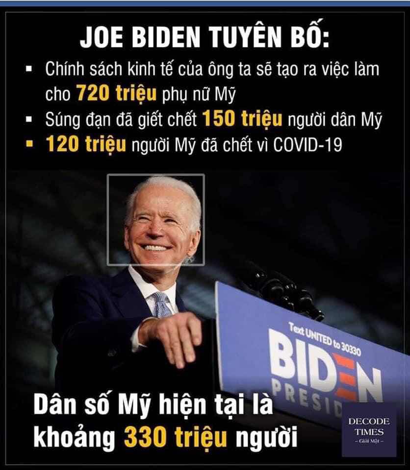 Năm ngoái, Joe Biden tuyên bố lão ta sẽ đánh ông Trump như đánh trống. Tuy nhiên với những người đã, đang và sẽ diễn ra thì mọi người nên hiểu ngược lại những gì Joe Biden nói là sẽ trúng y chóc.