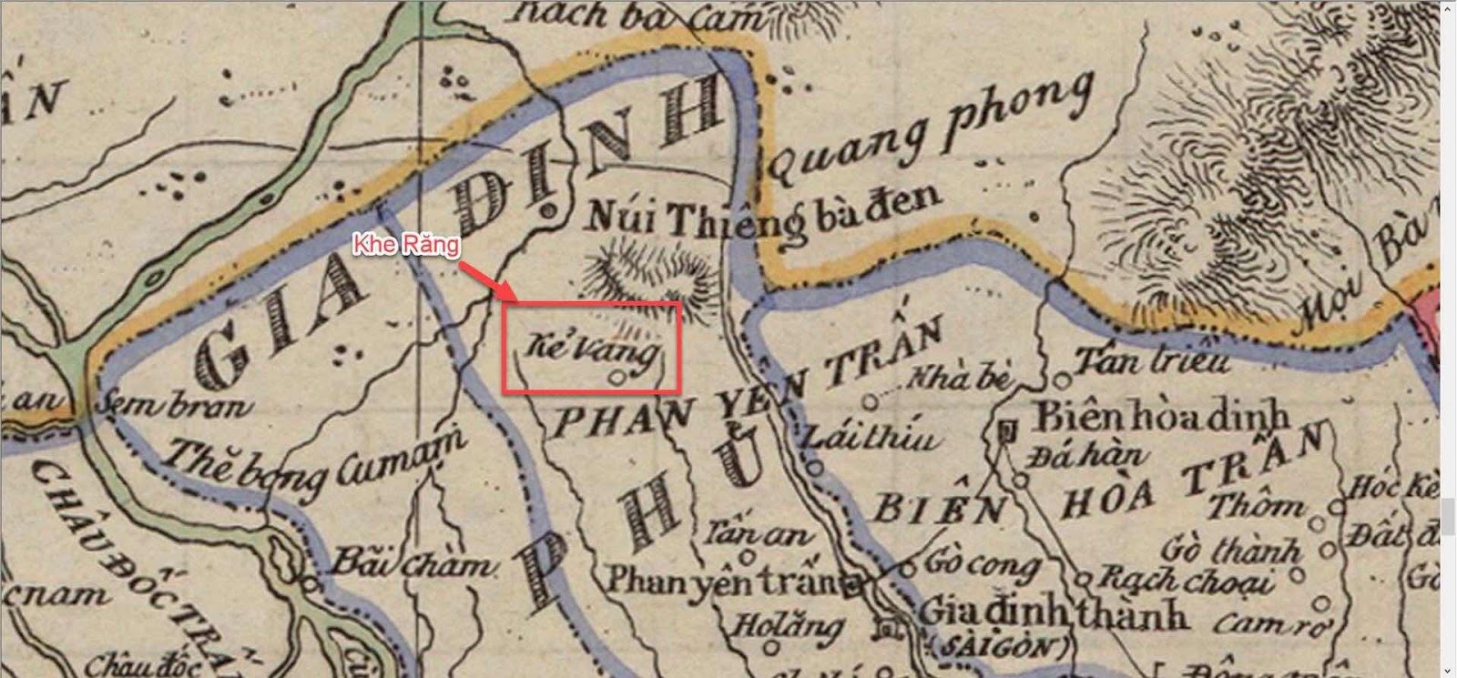 Kẻ Vang trong bản đồ này chắc là địa danh Khe Răng (rạch Khe Răng, Xỉ Khê) ở Tây Ninh rồi