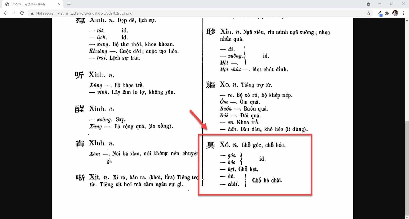 (a) chữ 臭 trong bộ Hoàng Việt nên diễn âm là Xú (mà nghĩa Hán Việt là ô uế / xú uế, mà không là Xó (tức xó xỉnh) như mình nêu bên trên ?