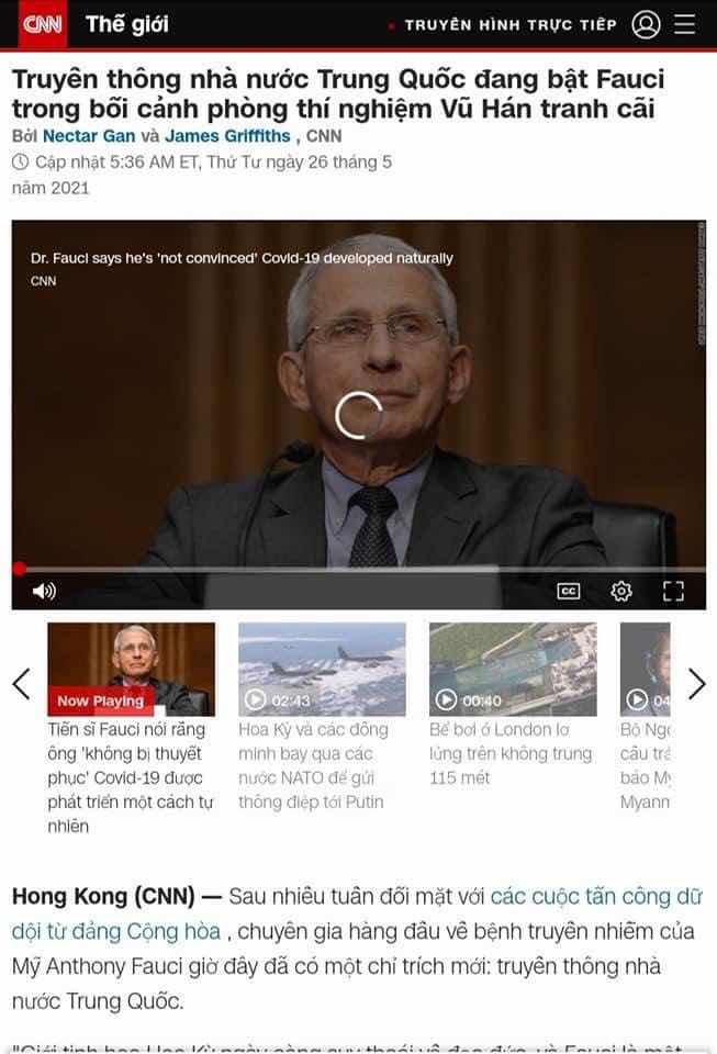 - Vấn đề với cách tiếp cận của Fauci không phải là anh ta đã sai về virus cúm Tàu cộng, mà là anh ta đã ngây thơ về đảng cộng sản Tàu cộng. Ông Fauci và những người khác dựa vào sự hợp tác và tính xác thực của các nhà khoa học Tàu cộng, những người có thể đã bị tổn hại bởi sự liên kết của họ với chánh phủ Tàu cộng.