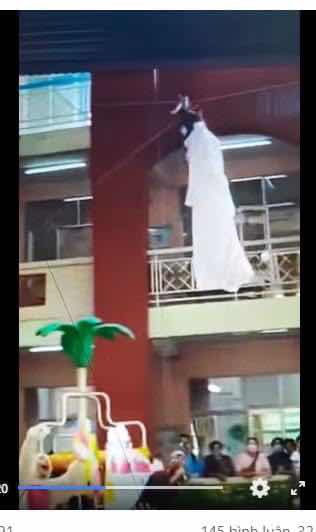 Đến trường, sau màn múa lân, múa rồng là một cảnh tượng kì lạ. Chị Hằng từ trên trời rơi xuống. Chị mặc áo trắng thướt tha. Tóc đen dài xõa xuống tận eo. Cái đầu ngoặt ngoẹo, cái chân lủng lẳng. Trên cổ chị là một sợi dây thừng.