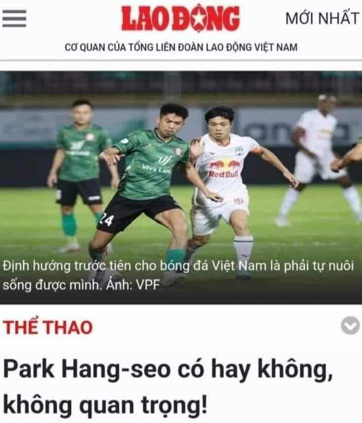 QUAN TRỌNG HAY KHÔNG QUAN TRỌNG Tôi thấy nhiều người phản ứng với cái tít của Báo Lao động "Park Hang Seo có hay không, không quan trọn...