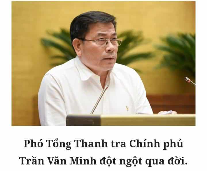 Hôm qua tui có viết bài nói về việc khởi tố Tập đoàn Rạng Đông và đưa Võ Văn Thưởng lên làm chủ tịch nước thì hôm nay có tin phó tổng thanh tra chính phủ Trần Văn Minh đột ngột qua đời.