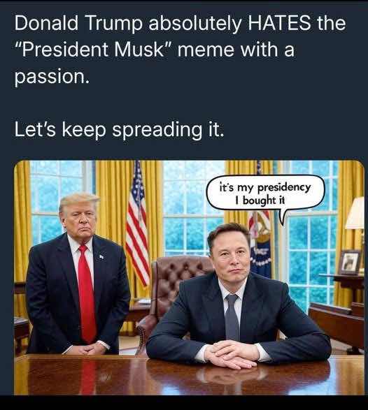 Câu mở đầu của meme—“Donald Trump absolutely HATES the ‘President Musk’ meme with a passion” (Donald Trump cực kỳ ghét meme ‘Tổng thống Musk’)—cũng là một sự châm biếm. Trump nổi tiếng là người không thích bị lu mờ, và ý tưởng về việc một người khác, đặc biệt là một tỷ phú khác, có thể thay thế ông trên sân khấu chính trị chắc chắn không làm ông hài lòng.