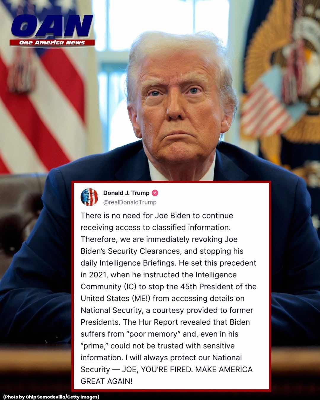 Trump nhấn mạnh rằng Biden có trí nhớ kém và không thể tin cậy với thông tin mật. Ông trích dẫn báo cáo của công tố viên đặc biệt Robert Hur, trong đó đề cập đến “trí nhớ kém” của Biden trong một số tình huống. Tuy nhiên, nhiều chuyên gia cho rằng việc sử dụng báo cáo này làm lý do thu hồi quyền tiếp cận tình báo là một chiến thuật chính trị hơn là một mối quan ngại thực sự về an ninh quốc gia.